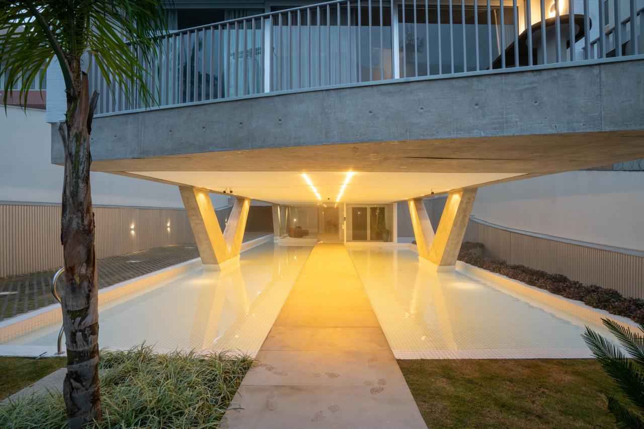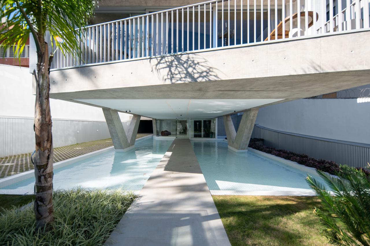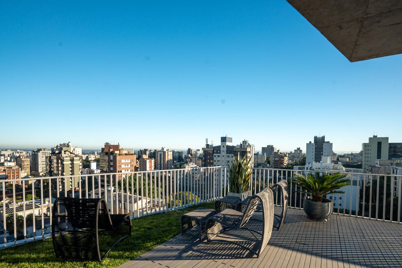 Essa sobreposição dos terraços também criou um sentimento de “casa”, com o apartamento totalmente integrado à área externa. Na ponta mais estreita do terraço, tem-se o jardim. Na outra, mais larga, é possível se colocar um espaço de estar bem confortável. E ao olhar para cima, tem-se a visão livre do céu.
